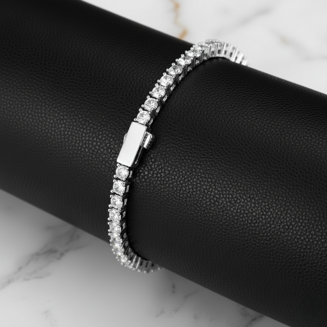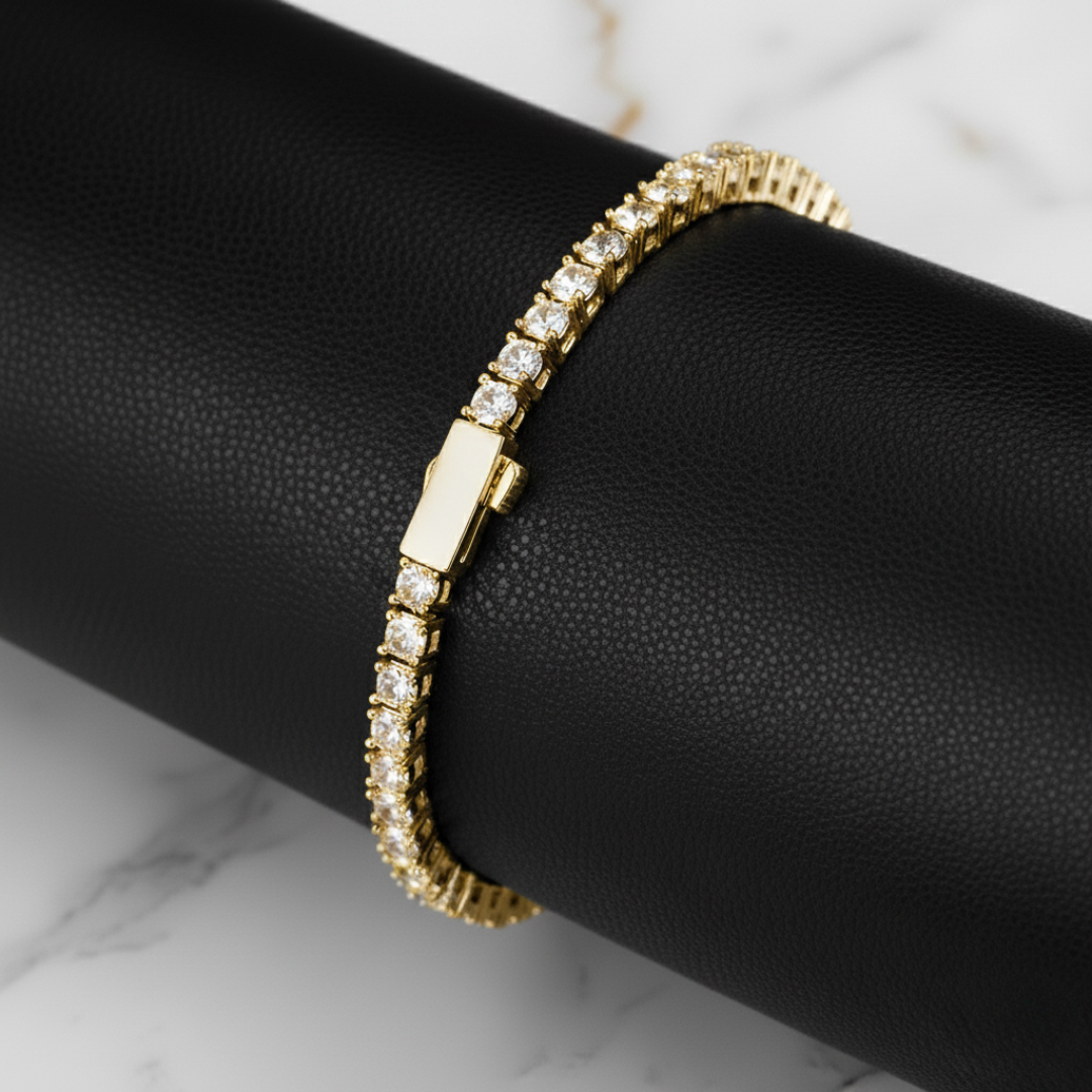 Realza tu estilo con nuestra pulsera de tenis de 5 mm , una pieza que combina elegancia y modernidad en cada detalle. Elaborada en cobre de alta calidad con piedras deslumbrantes y un acabado en oro o platino, es el accesorio perfecto para brillar en cualquier ocasión.